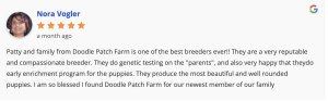 For those who have purchased a puppy from Doodle Patch Farm, it is now more convenient than ever to give us a review on both Google and Facebook. Â Our review page on the website pulls all the reviews from both places to share. There are also buttons to click to go to our review pages on Google and Facebook to let others know about your experience. When submitting your review, we would love for you to share some photos of your puppy at home. Â Let us know how your new family member is doing!